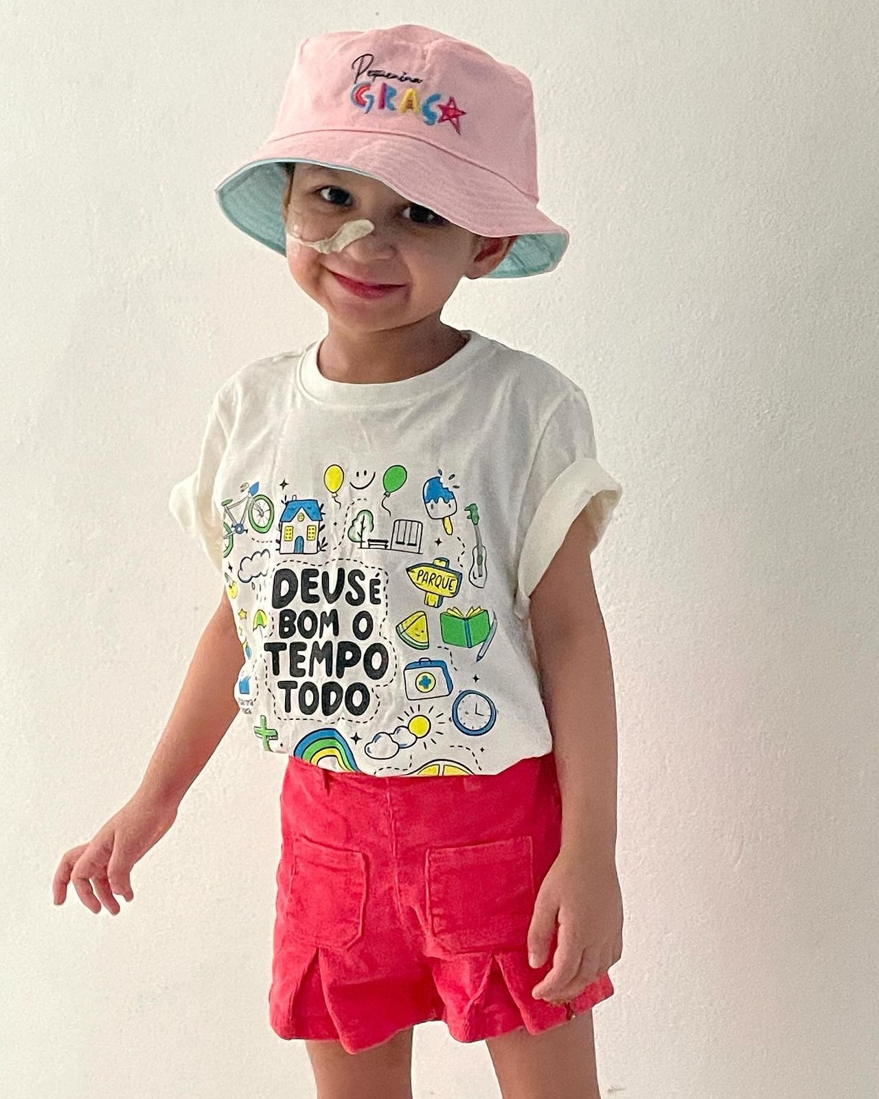 Camiseta inspirada no Salmos 100.5: "Porque o Senhor é bom, o seu amor dura para sempre, e a sua fidelidade não tem fim", um dos textos preferidos da familia da pequena Liz, uma pequenina que foi diagnosticada com cancer aos 2,3 anos de idade.