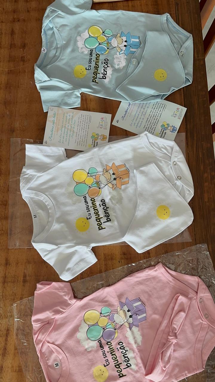 Body confecionado em malha cotton, nas cores branco (unissex), azul (masculino) e rosa (feminino), com estampa linda "Eu sou uma pequenina benção", para celebrar e agradecer a Deus pelo nascimento deste pequenino!