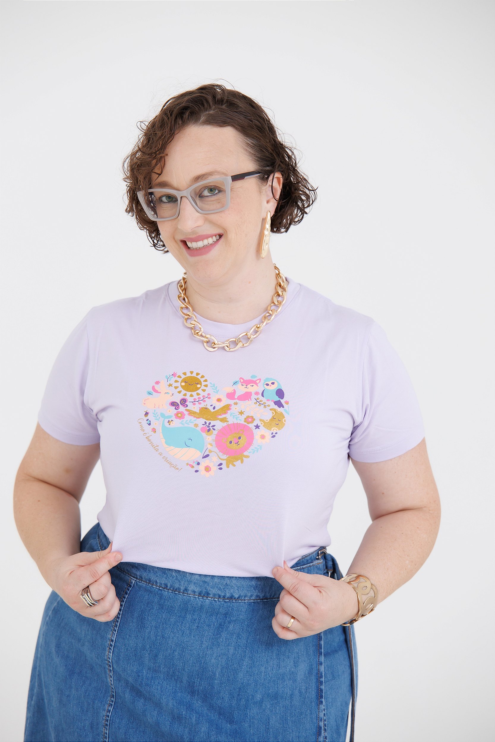 Frase "Como é bonita a criação", para remeter às maravilhas criadas por Deus e estampadas na camiseta.